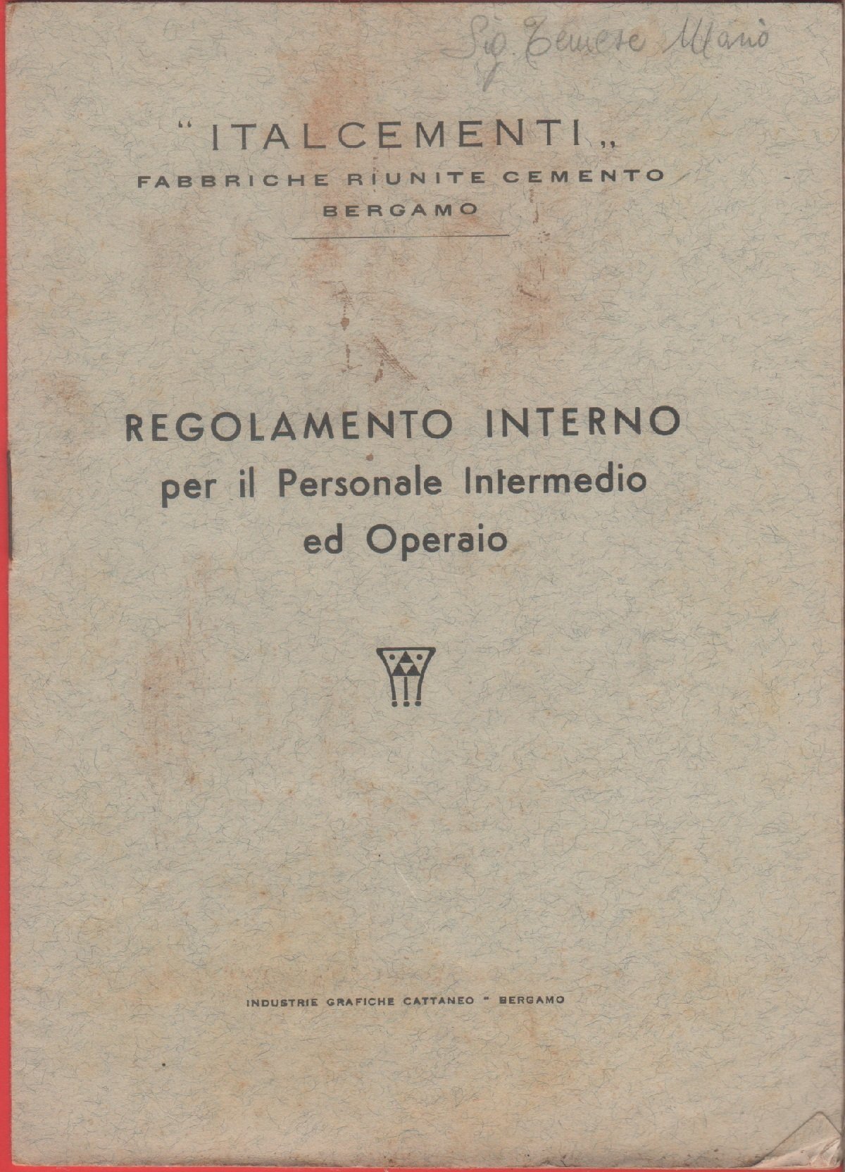 Italcementi Bergamo. Regolamento interno per il personale. 1957