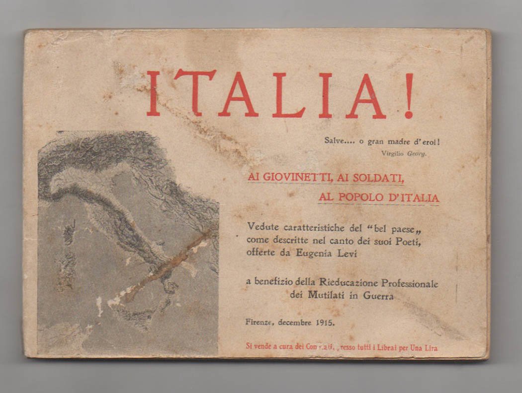 Italia! Ai giovinetti, ai soldati al popolo d’Italia. Vedute caratteristiche del “Bel paese” come descritte nel canto dei suoi Poeti, offerte da Eugenia Levi a benefizio [beneficio] della Rieducazione Professionale dei Mutilati di Guerra