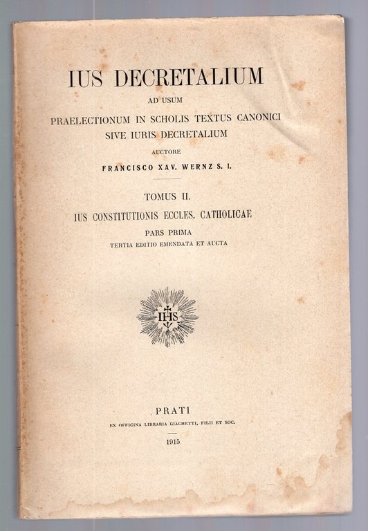 Ius decretalium ad usum praelectionum in scholis textus canonici sive iuris decretalium Tomus II : Ius constitutionis Eccle. Catholicae Pars Prima
