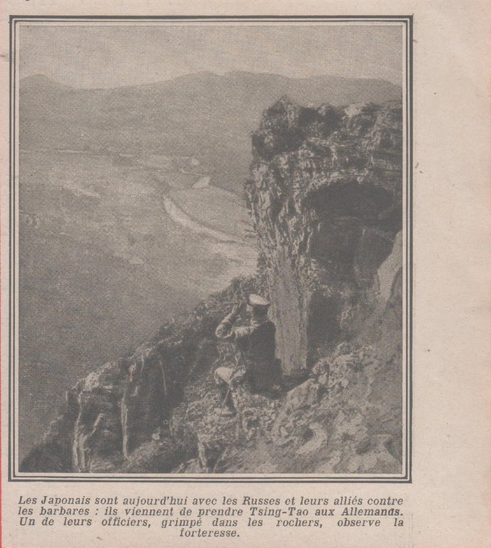 IWW. Un ufficiale giapponese osserva la fortezza di Tsing Tao (Cina). 1915