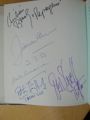 1 vol. in-8 carré cartonnage éditeur illustré / 8vo, hardcover, Brückmann, Munchen, 1987, 207 pp. Profusely signed by various artists : Cheryl Studer, Mariana Nicolesco, Helen Donath, Christian Boesch, Peter Seiffert, Thomas Allen, etc. Very good copy.