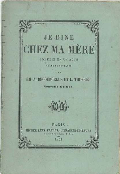 Je dine chez ma mère. Comédie en un acte melée de couplets