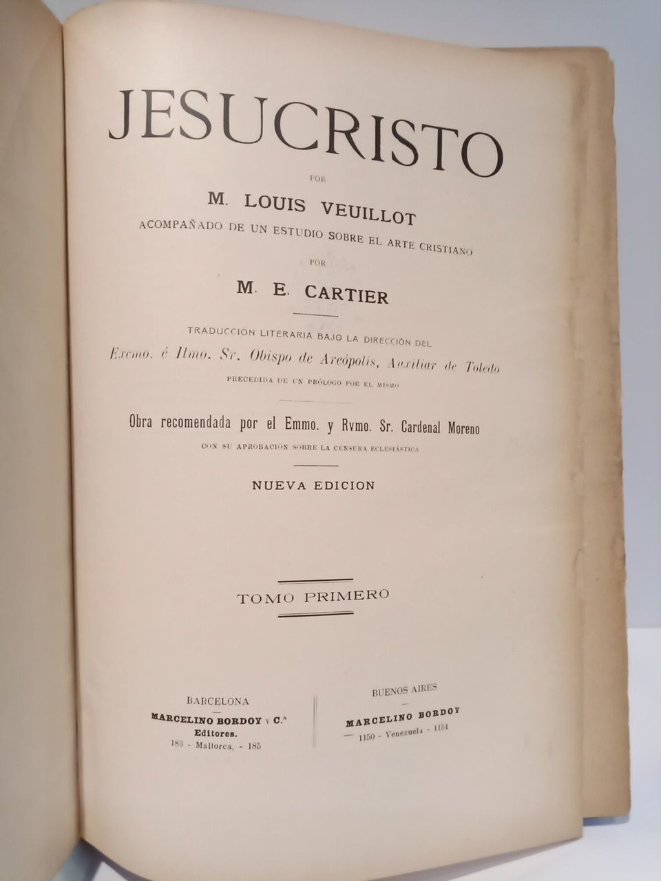 Jesucristo / Acompañado de un estudio sobre el arte cristiano por M. E. Cartier; Traduc. literaria bajo la dirección del Excmo. e Ilmo. Sr. Obispo de Areópolis, Auxiliar de Toledo; Precedida de un prólogo por el mismo