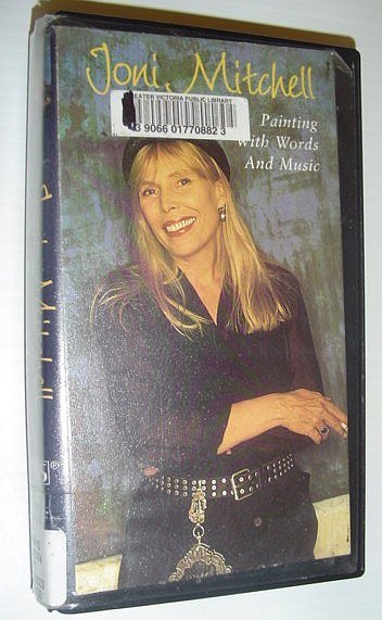 - Joni Mitchell: Painting With Words and Music *99 Minute VHS, Videotape with case* Queen of folk, rock, performs for an intimate audience on a Warner Bros. sound stage, in Los Angeles. The concert is classic Joni, covering a broad base of her repertoire from over the years., With a backdrop provided by some of her very own paintings, this program is a revealing look at both the life and talents of, Joni Mitchell. Featuring Big Yellow Taxi, Hejira, Crazy Cries of Love, Woodstock, Why Do Fools Fall in Love Music