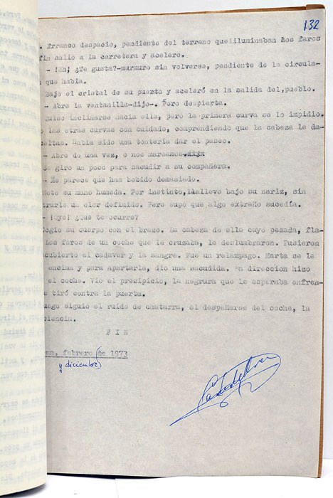 Tapuscrit. 1 feuillet. 132 feuillets chiffrés. (28x21,5 Cm). Couverture agrafée de papier kraft. Titre manuscrit sur le plat supérieur. Petits accrocs. Texte dactylographié original de ce roman de l'écrivain espagnol Carlos de Arce, dont l'action se déroule à Barcelone. "La ficción es la ficción, no una realidad. Las personas y acontecimientos de esta novela son ocurrencias de mi imaginación. Sólo la ciudad es real". Quelques annotations manuscrites de l'auteur, signature autographe sur le titre ainsi que sur la dernière page.