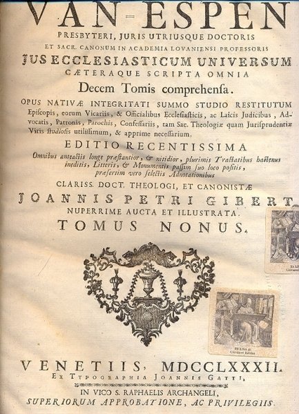 Jus Ecclesiasticum Universum caeteraque scripta omnia decem tomis comprehensa. Opus nativae integritati summo studio restitutum, Episcopis, eorum Vicariis, & Officialibus Ecclesiasticis, ac Laicis Judicibus, Advocatis, Patronis, Parochis, Confessariis, tam Sac. Theologiae quam Jurisprudentiae Viris studiosis utilissimum, & apprime necessarium.