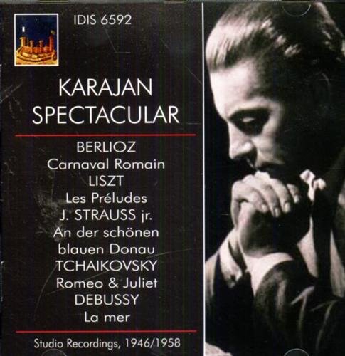 Karajan Spectacular. Berlioz - Carnaval Romain Liszt - Les Préludes J. Strauss jr - An der schonen blauen Donau Tchaikovsky - Romeo & Juliet Debussy - La mer