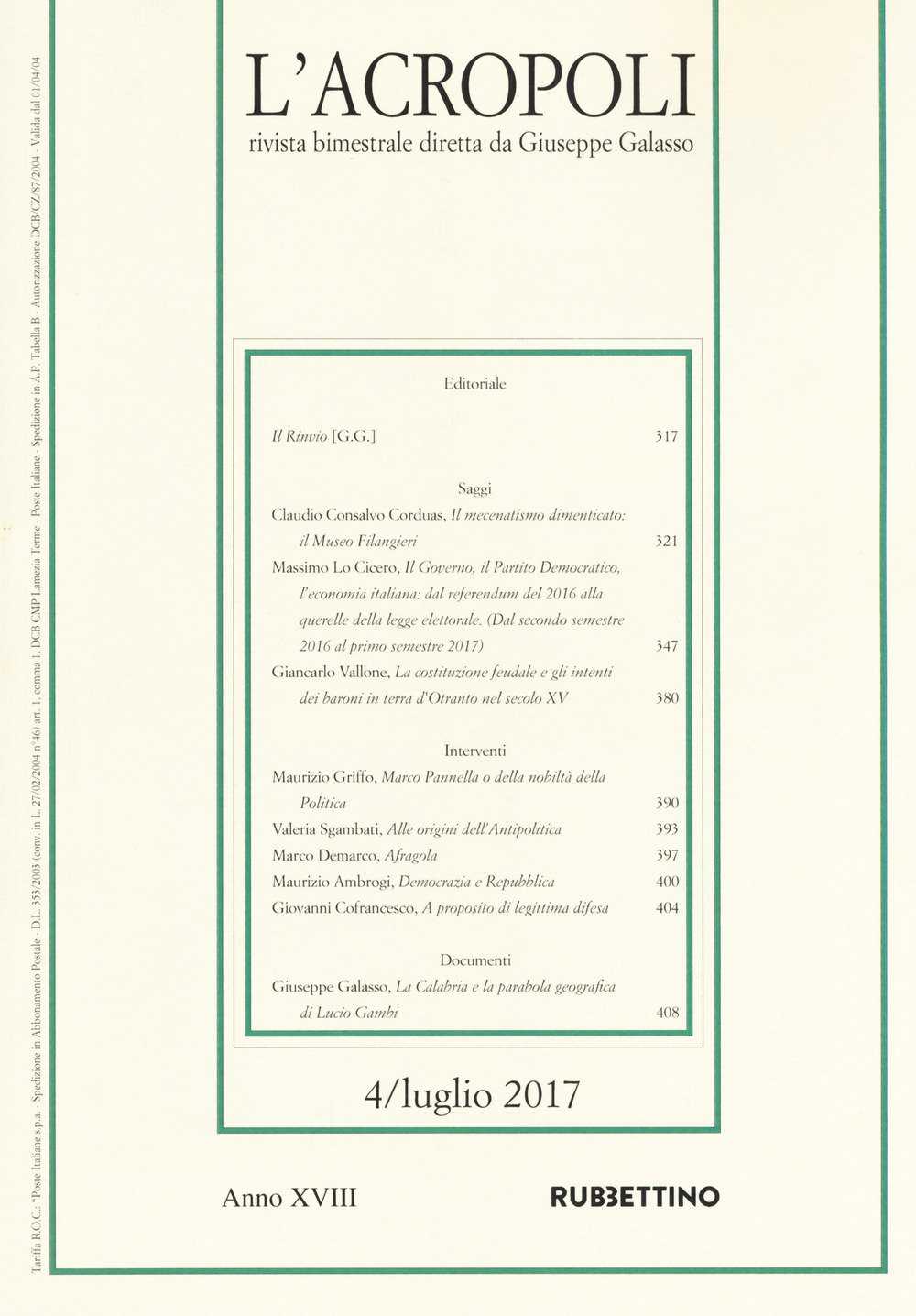 Rivista bimestrale di politica e varia cultura diretta da Giuseppe Galasso.