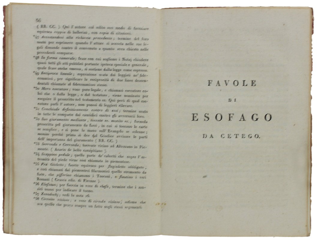 (Codice TT/1026) In 16º (17x11,5) XIV [2]-88 pp. Dramma scherzoso ricco di divertenti invenzioni linguistiche, pubblicato anonimo, seguito da 14 favole e un sonetto. Cartonatura antica, con scoloriture e qualche mancanza, bordo appena rosicato, ma ancora valida. Alla copertina posteriore antica scritta scherzosa a penna "Pria Fracido Che maturo". ~~~ SPEDIZIONE IN ITALIA SEMPRE TRACCIATA