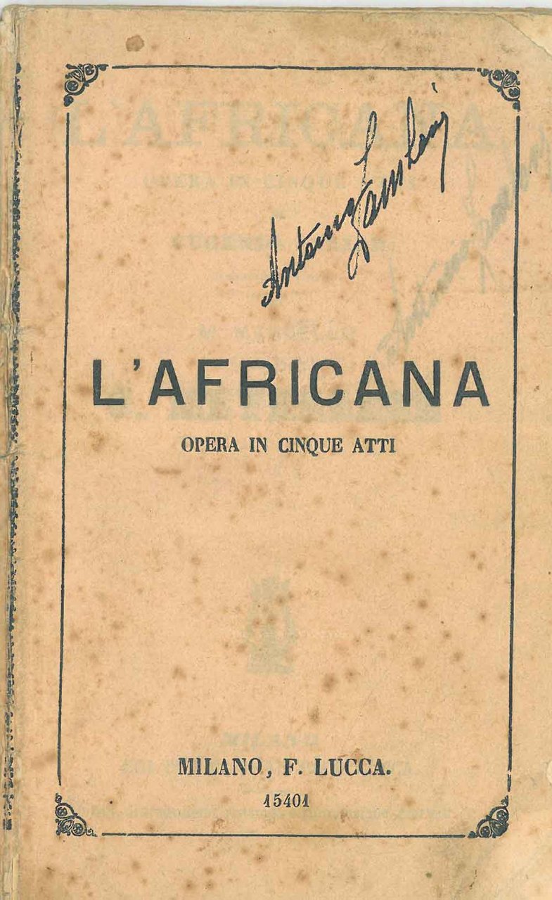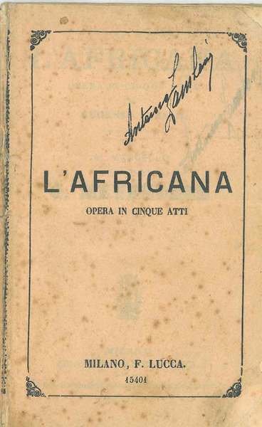 L' Africana. Opera in 5 atti di Eugenio Scribe, traduzione italiana di M. Marcello, musica di G. Meyerbeer