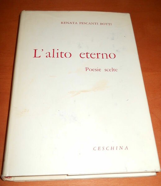 RENATA PESCANTI BOTTI, L'alito eterno. Poesie scelte - Ceschina, 1964 - copertina rigida con sovracopertina, formato cm 15 x 22, pag 247, autografo e dedica dell'autrice sulla pagina di risguardo - buonissimo stato generale, nessun segno lettura, pagine senza segni tempo, leggeri segni tempo e leggera usura per la sovracopertina