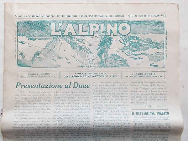 "L'Alpino" giornale quindicinale dell'Associazione Nazionale Alpini. Numero straordinario in 16 pagine per l'Adunata di Roma 6 - 7 - 8 Aprile 1929.