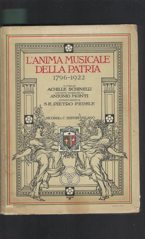 2 Volumi Di 356 E 328 Pagine . In Buono Stato . Con Note Storiche Di Antonio Monti . Introduzione Di S. E. Pietro Fedele . Dedica Autografa Di Schinelli In Antiporta . Copertina In Stile Liberty. La Quarta Di Copertina Del Primo Volume Presenta Fioriture E Macchie . L'opera È Di Difficile Reperibilità Ed È LaMassima Raccolta Esistente Di Canti E Musiche Popolari Della Storia Italiana Del Passato .Lo Stato Complessivo È Buono .