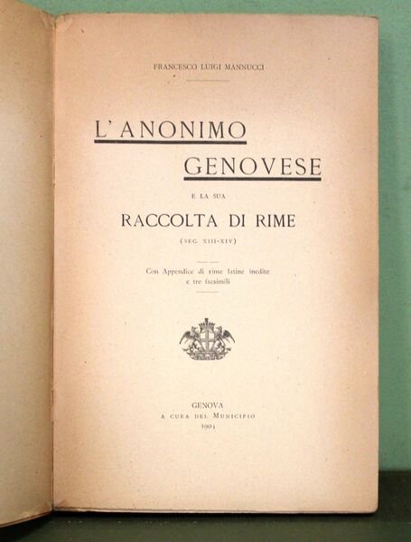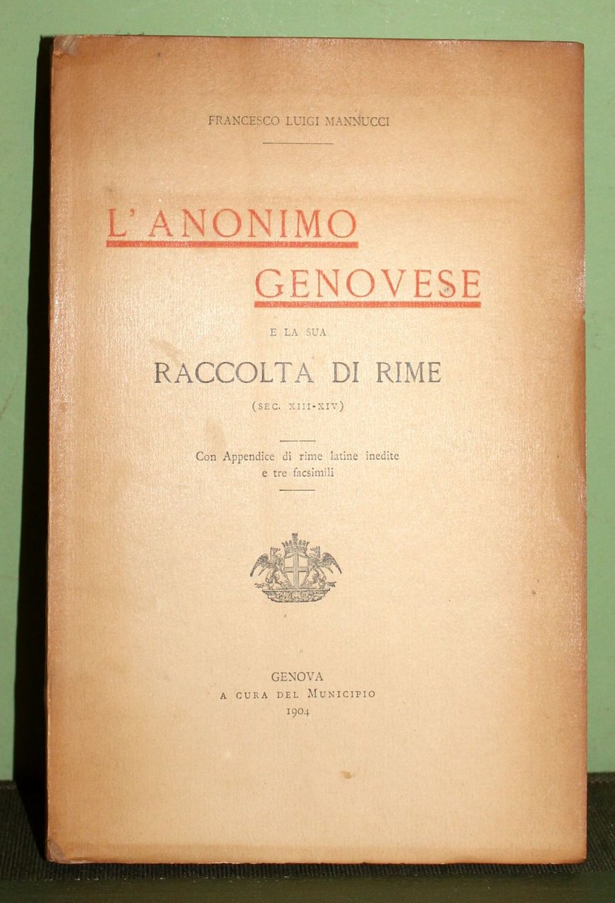 L'Anonimo Genovese e la sua raccolta di rime (sec. XIII - XIV). Con appendice di rime latine inedite e tre facsimili