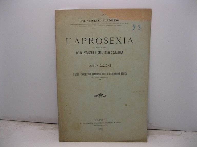 L'Aprosexia dal punto di vista della pedagogia e dell'igiene scolastica. Comunicazione al primo Congresso Italiano per l'educazione fisica