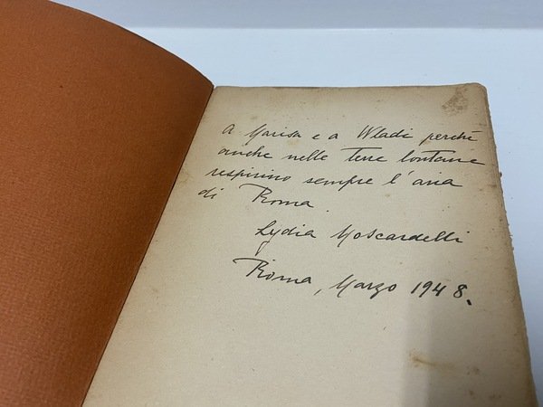 In 8°, br. 241 pp., dedica di Lydia Moscardelli, barbe non rif., dorso mancante di un lembo nella parte superiore.