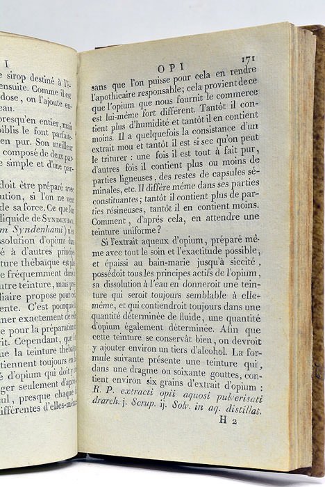 277 pages. 1 feuillet. (17x10 Cm). Demi veau. Dos lisse orné légèrement fendu. Charnières partiellement fendues. Ouvrage du chimiste et pharmacien allemand Jean Barthelemi Trommsdorff, professeur de chimie et de physique. Il fut le premier à préparer par électrolyse un amalgame d'ammoniac et on lui doit plusieurs découvertes importantes. Cet ouvrage est un dictionnaire qui recense les préparations les plus usitées en pharmacie et en donne la composition chimique. La traduction est due à B. Dutilleur, médecin de Lille, ville où l'ouvrage a été imprimé. Exemplaire bien conservé.