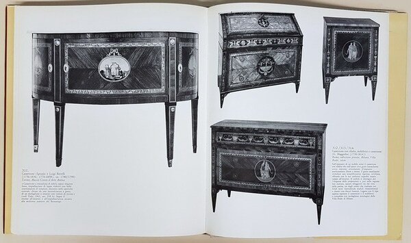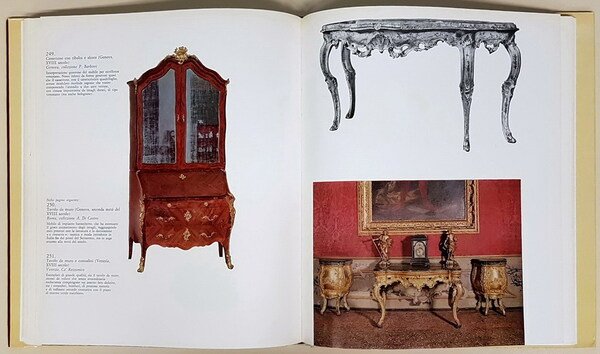 Vol. in -4 (27 x 32 cm.), legatura editoriale telata col. ecrù, sopracopertina marrone con illustr. a colori e titoli in giallo sul piatto ant., custodia in cartoncino grigio muto, pp. 246, (2) con 344 illustr. in b.n. e colori nel testo e a p.pagina raffiguranti mobili antichi. In ottime condizioni.