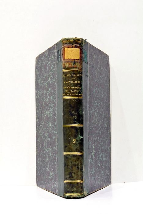 Tome II seul. 394 pages. 6 feuillets. Illustrations dans le texte. (22,5x14cm). Demi-cuir. Dos orné avec auteur,titre et tomaison en lettres dorées. Couverture et dos frottés avec manques de cuir. Coins et coiffes émoussés. Cet ouvrage, publié à Paris en 1892 par le Colonel Langlois, s'inscrit dans le contexte de l'évolution militaire de la fin du XIXe siècle, marquée par des avancées technologiques significatives. À travers ce deuxième tome, l'auteur approfondit l'interaction de l'artillerie de campagne avec les autres composantes militaires, soulignant l'importance de la coordination et de la stratégie dans les opérations armées. Cette publication reflète les préoccupations de l'époque concernant l'efficacité et l'innovation dans la conduite de la guerre, offrant une perspective historique sur les théories militaires qui prévalaient avant les grands conflits mondiaux du XXe siècle. Papier bruni avec petites taches et rousseurs éparses. Illustrations dans le texte. Tome II seul.