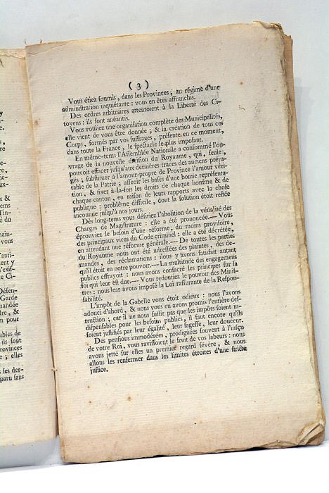 11 pages. (20,5x13 Cm). Broché. Rousseurs et taches. Miniscule trou de vers traversant la totalité du document sans manque de texte. "Plaignez, François, les victimes aveugles de tant de déplorables préjugés; mais, sous l'empire de Lois, que le mot de vengeance ne soit plus prononcé."