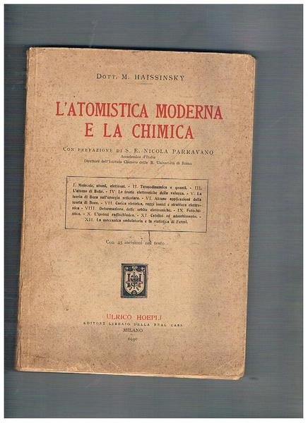 L'atomistica moderna e la chimica, con prefazione di S. E. Nicola Parravano. Contiene: Molecole, atomi, elettroni; Termodinamica e quanti; L'atomo di Bohr; Le teorie elettroniche della valenza; La meccanica ondulatoria e la statistica di Fermi; ecc….