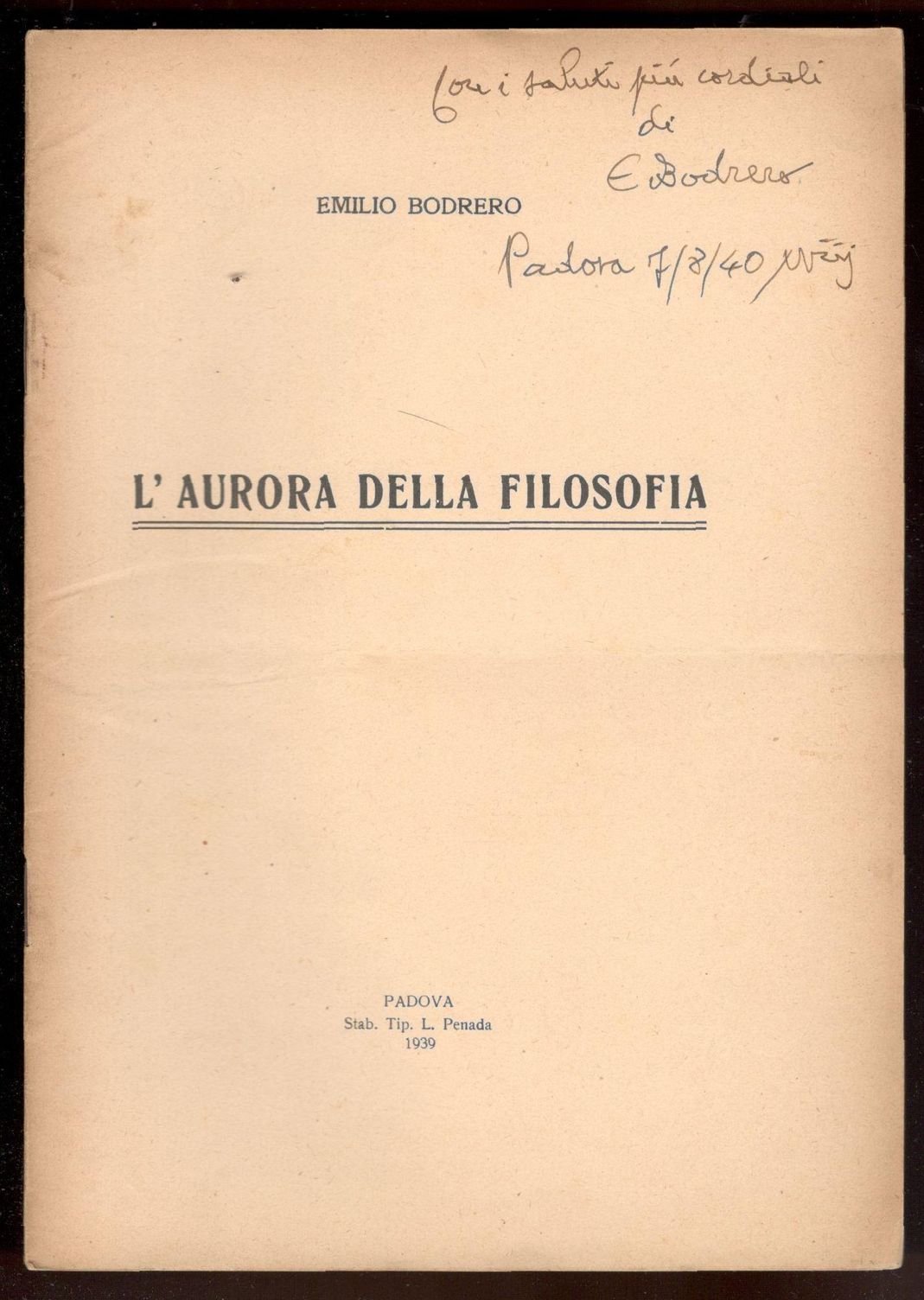Opuscolo in 8°, pp. 16. Brossura editoriale spillata. Margini leggermente ingialliti ma buona copia. Invio autografo dell'autore sulla copertina.