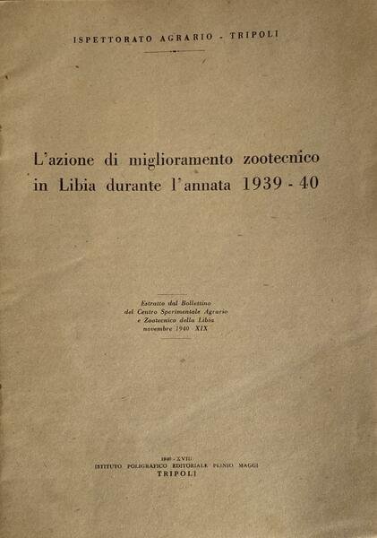 L'azione di miglioramento zootecnico in Libia durante l'annata 1939-40