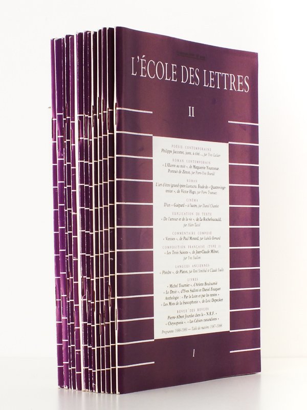13 vol. in-8 br. (dont 1 double), couv. violette, L'école des lettres, Paris, 1988 et 1989, env. 900 pp. au total. Au sommaire notamment : L'Atelier de Francis Ponge ; Le romande Formation (in n° 12) ; Très bon état. Prix pour l'ensemble.