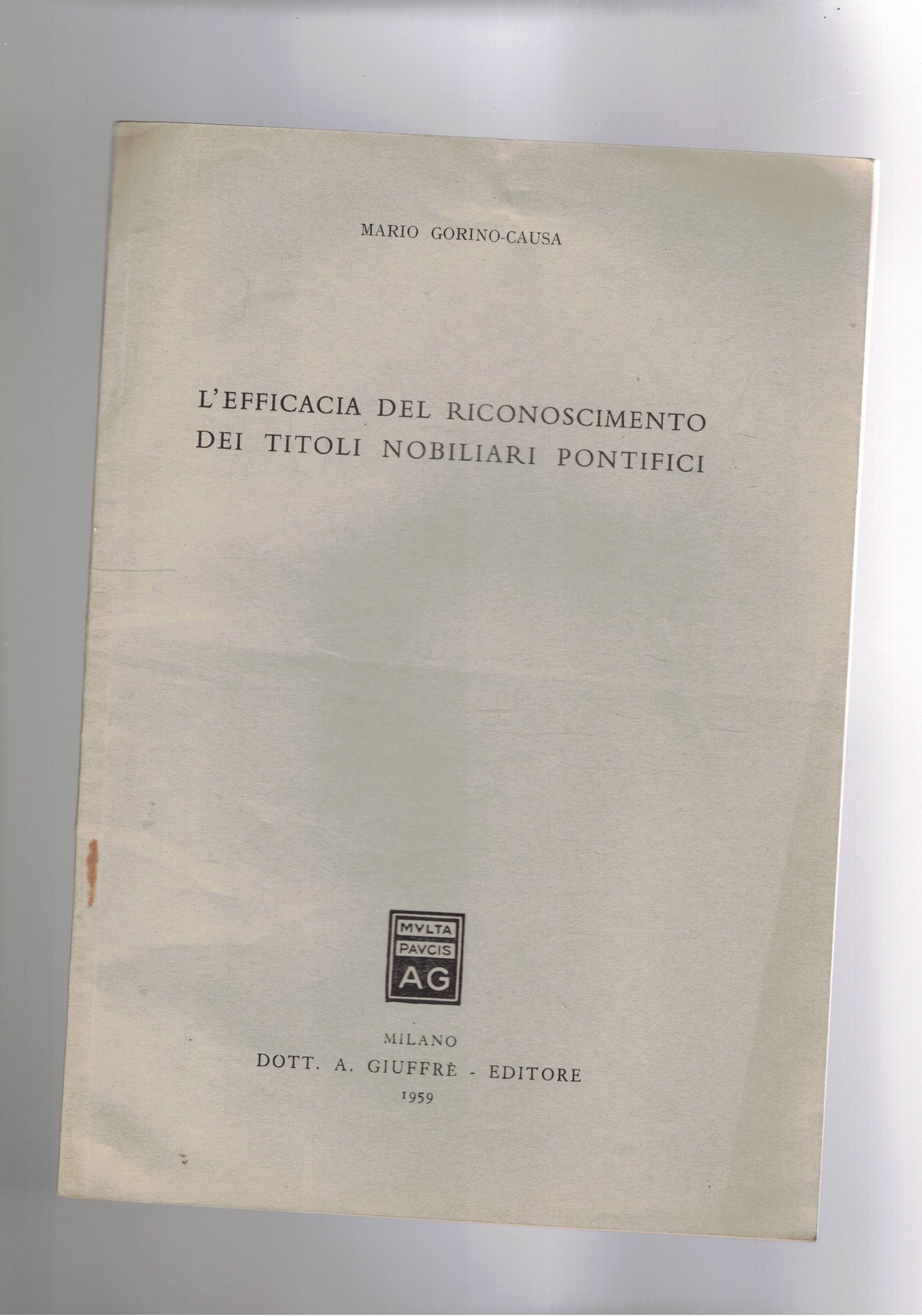 In-8° pp. 39 con invio autografo. Bross. edit.