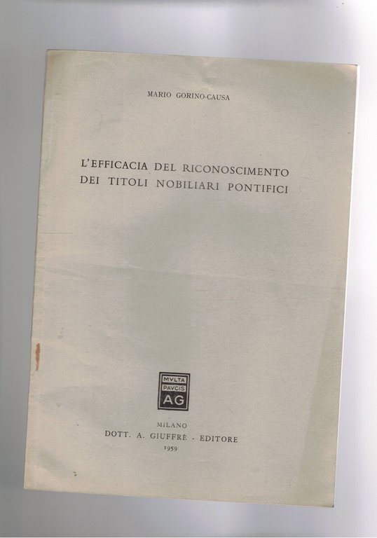 L'efficacia del riconoscimeto dei titoli nobiliari pontifici. Estratto.