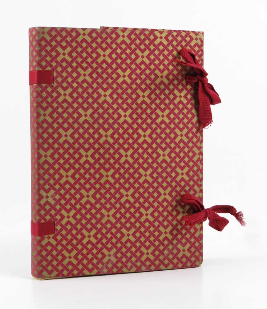 - legatura editoriale in seta color oro, con bell’astuccio in tela di color rosso e oro con nastri rossi;
