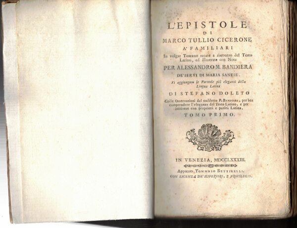 L'Epistole in volgar toscano recate a riscontro del testo latino ed illustrate con note per A.M.Bandiera dè servi di Maria Sanese si aggiungono le formole più eleganti della lingua latina di S.Doleto. Tomo I