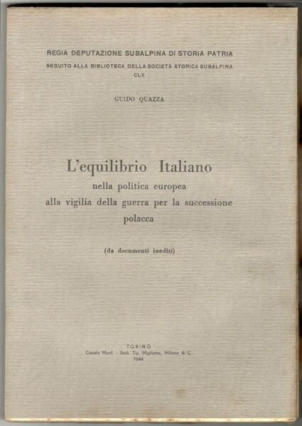 In 8°, pp. (8), 160. Brossura editoriale. Qualche rara ingiallitura. Copia in buono stato, interamente a fogli chiusi. Biblioteca della Società Storica Subalpina, CLX.