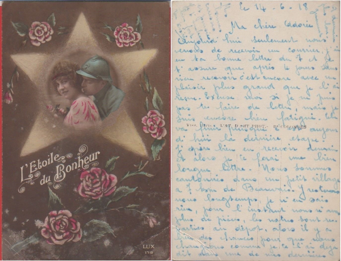 L'etoile du bonheur. Viaggiata non affrancata 1918