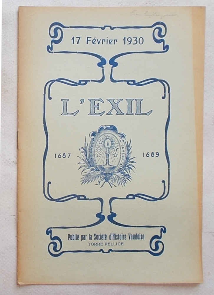 In 8° (cm. 22 x 14); pagg. 16; con stemma al frontespizio e 1 illustraz. n.t.; brossura origin. figurata. VG. ** In lingua francese. Pubblicato dalla Società di Storia Valdese Torre Pellice.