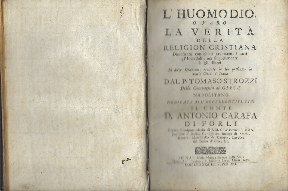 L' Huomo-Dio, Overo La Verita' Della Religion Cristiana Dimostrata Con Chiari Argomenti A Tutti Gl'increduli, Ma Singolarmente A Gli Ebrei In Diece Orazioni, Recitate In Lor Presenza In Varie Citta D'italia