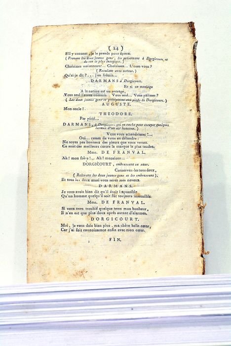 24 pages (19x12cm). Broché. Rousseurs sur l'ensemble des feuillets. Exemplaire non rogné. Rare pièce. Théâtre.