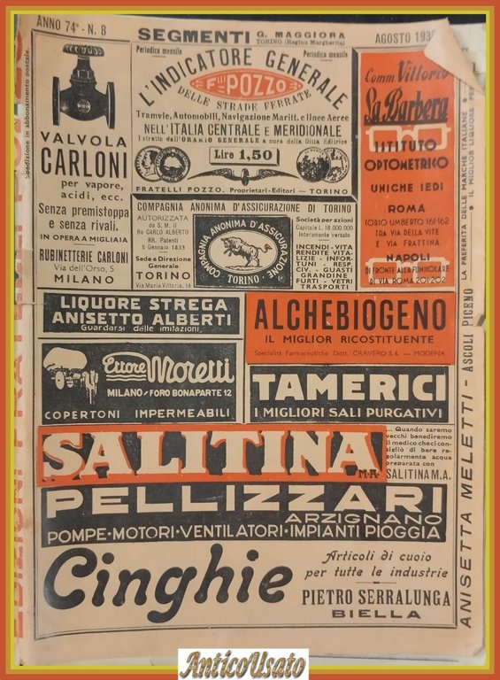 Fratelli Pozzo Editore, 1938. 136 pagine, numerose illustrazioni in bianco e nero. Copertina editoriale in brossura . Stato di conservazione: buono (pagine normalmente ingiallite, copertina sciupata con strappi e staccata dal resto del libro) Libro usato saggistica