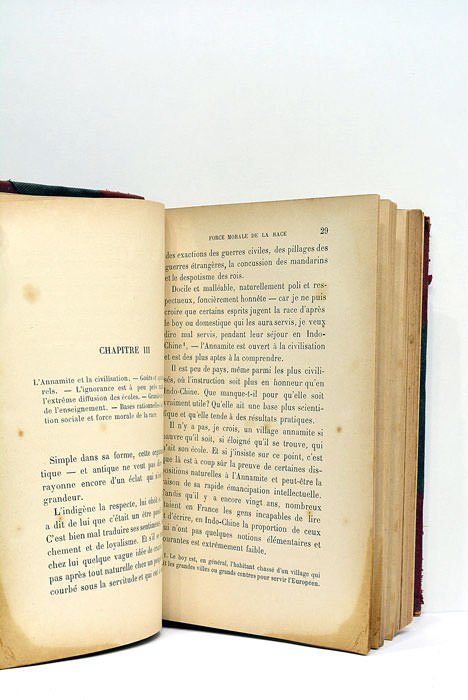 290 pages. (18,5x12cm.). Demi-cuir rouge à coins. Dos lisse doré. État d'usure. Coins et coiffes émoussés. Petits accrocs et manques de cuir. Déchirures au dos. Fortes rousseurs et papier bruni. Mouillures.