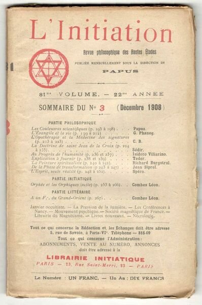 Librairie initiatique, 1908