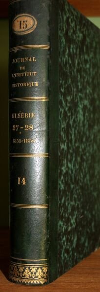 Due tomi in un volume in 8°, pp. 372; 384. Mezza pelle dell'epoca. Dorso liscio con titoli e filetti oro. Copia in buono stato. Fra i vari saggi segnaliamo: RENZI, A. Jeanne d'Arc. Sa mission et son martyre. (Con una tavola fuori testo). - DEPOISIER. Entrée de l'armée française en Savoie le 22 septembre 1792. - BRIGNOLE, marquis de. Percement de l'isthme de Suez. Exposé et documents officiels par M. Ferdinand de Lesseps. - ALIX. De la civilisation du Japon. - CARRA de Vaux. Les theatres pendant la révolution. - VALAT. Précis historique sur le procès des Templiers.