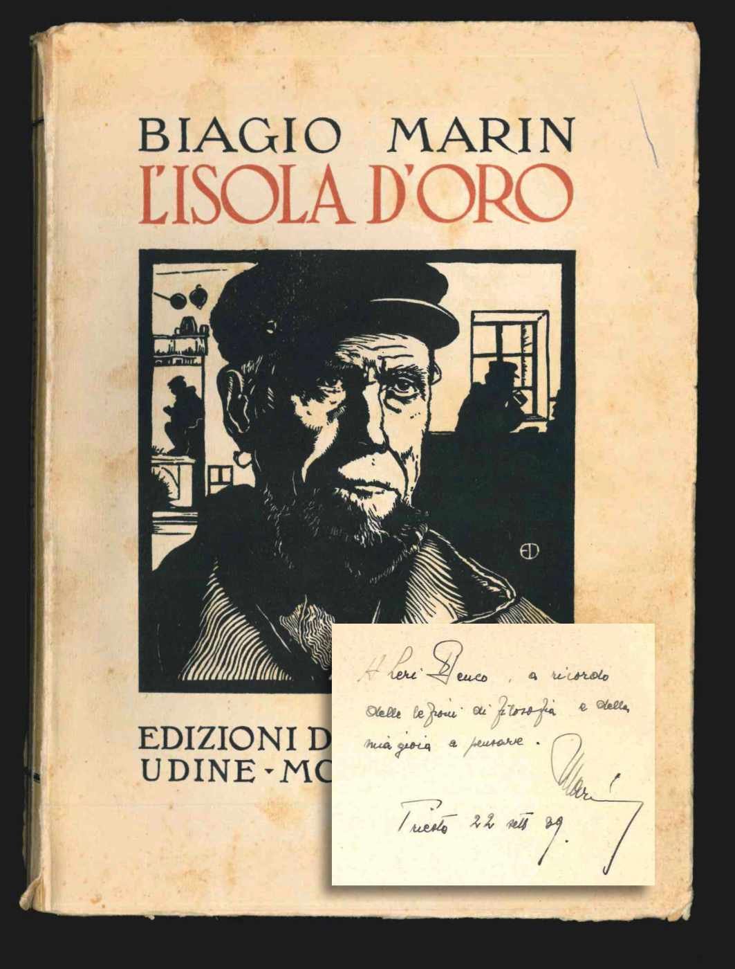 LIBROPrima edizione.Ottimo esemplare, fresco e pulito.Brevi prose italiane, frammenti di luoghi lagunari (con belle illustrazioni fotografiche fuori testo): l’artista di Grado espone la sua poetica. Il libro è stato ripubblicato nel dopoguerra per le cure del Comune di Grado, con titolo «Grado: l’isola d’oro» (1955).