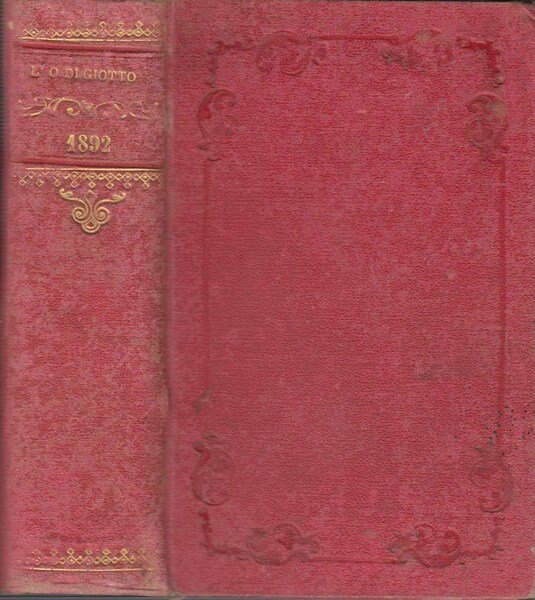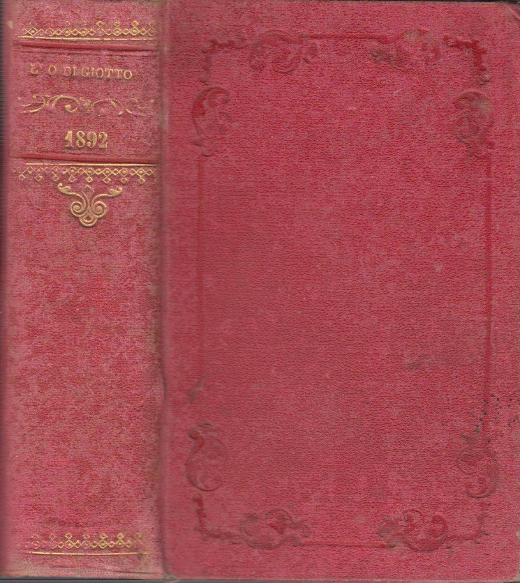 In-8 (Cm 21 x 13), Tutto il pubblicato del terzo anno della rivista L'O di Giotto dal numero 1 del 27 Dicembre 1891 al numero 53 del 25 Dicembre 1892. Mancano due numeri, il 47 ed il 51 per un totale di 51 Numeri du 53. Numerose illustrazioni bianco nero nel testo. La rivista fu illustrata da Vamba [Luigi Bertelli] che ne fu anche il direttore responsabile fino al al numero 9 del 21 Febbraio 1892. La legatura in tela presenta degli evidenti segni d'uso. I numeri sono in ottime condizioni, il solo numero 5 del 24/1/1892 presenta una mancanza all'angolo alto esterno di circa 6 x 4,5 cm con logica perdita di testo. MOLTO BUONO