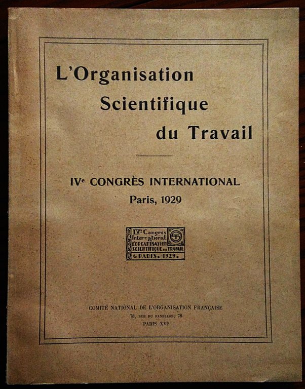 L' Organisation Scientifique du Travail. IV° Congres International Paris 1929.
