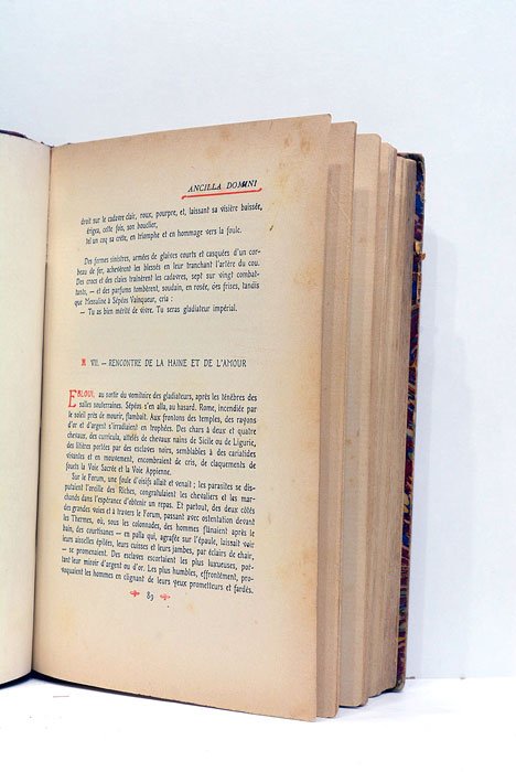 346 pages. (20x13,5cm.). Demi-cuir rouge. Dos à nerfs doré. Plats et dos frotté. Coins émoussés. Couverture d'origine conservée. Édition originale imprimée en rouge et noir. Orné de 32 planches hors-texte et nombreuses dessins dans le texte. Taches et rousseurs. Papier bruni.