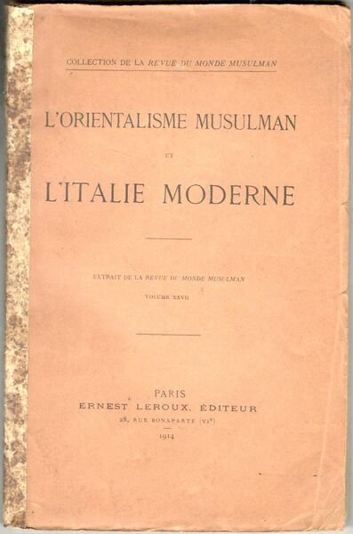 L'Orientalisme musulman et l'Italie moderne. Extrait de la Revue du Monde Musulman volume XXVII