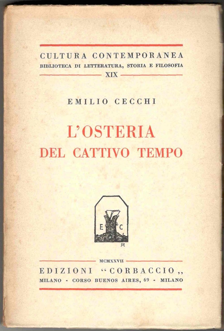 In 8°, pp. 228, (1). Brossura editoriale. Dorso leggermente ingiallito. Copia in buono stato. Collana: Cultura contemporanea. Biblioteca di letteratura, storia e filosofia, XIX. Prima edizione (X maggio MCMXXVII - Anno V). Cfr. Gambetti Vezzosi, p. 118.