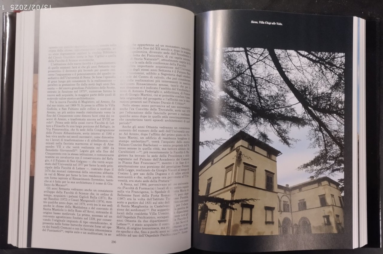 L'UNIVERSITÁ DI SIENA 750 ANNI DI STORIA, testi di Mario Ascheri, Elena Avanzati, Duccio Balestracci, Luigi Borgia, Attilio Brilli, Alberto Bruno, Antonio Cardini, Marco Ciampolini, Floriana Colao, Peter Denley, Gianfranco Fioravanti, Monica Folchi, Francesca Fumi Cambi Gado, Michael Kiene, Nicoletta Maraschio, Giovanni Minucci, Italo Moretti, Stefano Moscadelli, Paolo Nardi, Cinzia Parrini, Ettore Pellegrini, Gabriella Piccinni, Teresa Poggi Salani. Monte dei paschi di Siena Editore, 1991 . 597 pagine, innumerevoli fotografie in bianco e nero e a colori nel testo . Copertina editoriale in tutta tela con sovraccoperta. Stato di conservazione: QUASI NUOVO Libro usato saggistica