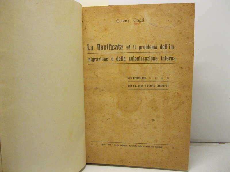 La Basilicata ed il problema dell'immigrazione e della colonizzazione interna. Con prefazione dell'On. Prof. Ettore Ciccotti