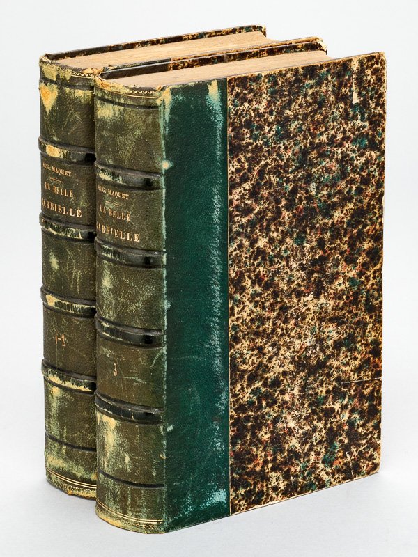 3 Tomes en 2 vol. fort in-12 relié d'époque demi-chagrin vert, dos à 4 nerfs, Librairie Nouvelle, Paris, A. Bourdilliat et Cie, Paris, 1861, 2 ff., IV-370 pp., 1 f., 371 pp. et 2 ff.-366 pp. 2 ff., 324 pp. Première édition in-18 de La Belle Gabrielle. Etat satisfaisant (rel. fort. frottée, qq. rouss.) pour ces tirages anciens de deux romans du célèbre collaborateur d'Alexandre Dumas. Vicaire, V, 499